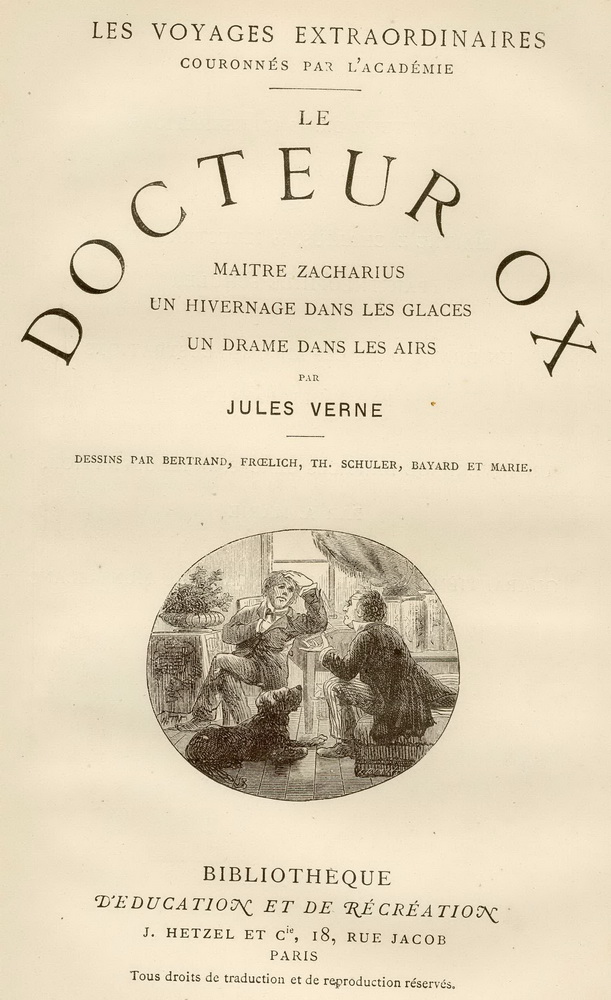 Il s'agit en fait d'un recueil de nouvelles : 'Une fantaisie du docteur Ox', 'Maitre Zacharius', 'Un hivernage dans les glaces', 'Un drame dans les airs'.